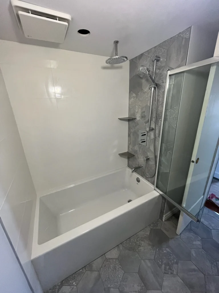 • L’installation de douches à l’italienne, baignoires modernes et vanités sur mesure.